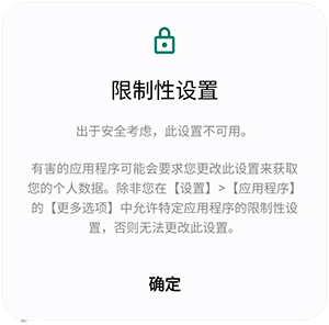 - 联想、摩托罗拉-‘受限制的设置’:长按‘微购精灵’图标-应用信息-右上角三个点-允许受限制的设置