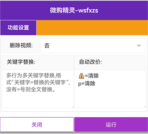 在文案与定价优化方面,微购精灵的关键字替换和自动改价功能堪称 “运营神器”。不同代理层级、不同销售渠道往往需要差异化的文案表述和价格体系:比如上家文案中的 “厂家直供” 需要替换为 “现货秒发”,批发价需要调整为零售价,或者部分平台禁止出现特定关键词需统一替换。微购精灵支持自定义关键字替换规则,批量替换文案中的指定词汇,让文案快速适配不同场景;同时,自动改价功能可智能识别素材中的价格信息,按照预设规则批量修改价格或直接清除价格,避免手动改价的疏漏与繁琐,确保定价精准合规,大幅提升素材复用效率。